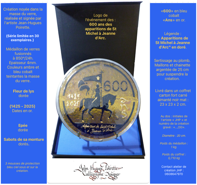 (Médaillon "Jeanne d'Arc" création collector en 30 exemplaires numérotés.)